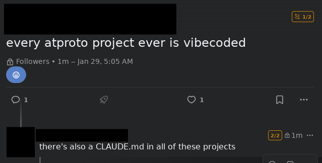 There's others too that noticed that ATProto seems to be a safe haven for those that like to "vibe code" or whatever.